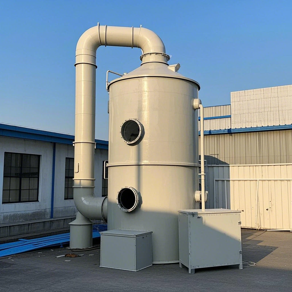 PP 材质喷淋塔,可以简单理解为 “工业废气的淋浴房”—— 通过喷淋液体 “洗” 掉废气中的有害物质(如酸雾、粉尘、异味),PP 材质则像 “防腐蚀盔甲”,让设备耐酸碱、寿命长。